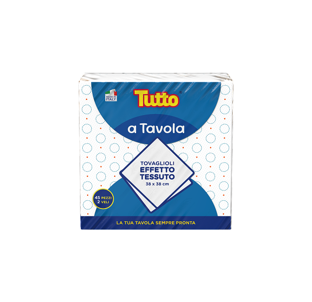 Pensati per un utilizzo quotidiano, i tovaglioli Tutto a Tavola si presentano in una confezione da ben 45 pezzi. Effetto tessuto, decorati con un motivo geometrico dal mood moderno, con stampa a due colori, puoi trovare in vendite nei migliori store anche le pratiche tovagliette americane in coordinato. I tovaglioli Tutto a Tavola, in pura cellulosa 2veli certificata FSC® MIX, nel formato 38x38 cm (aperto), sono perfetti per ogni occasione. La confezione dei tovaglioli, realizzata in polietilene riciclato min. 60% e certificata Plastica Seconda Vita, è totalmente riciclabile seguendo le disposizioni comunali in tema di raccolta differenziata