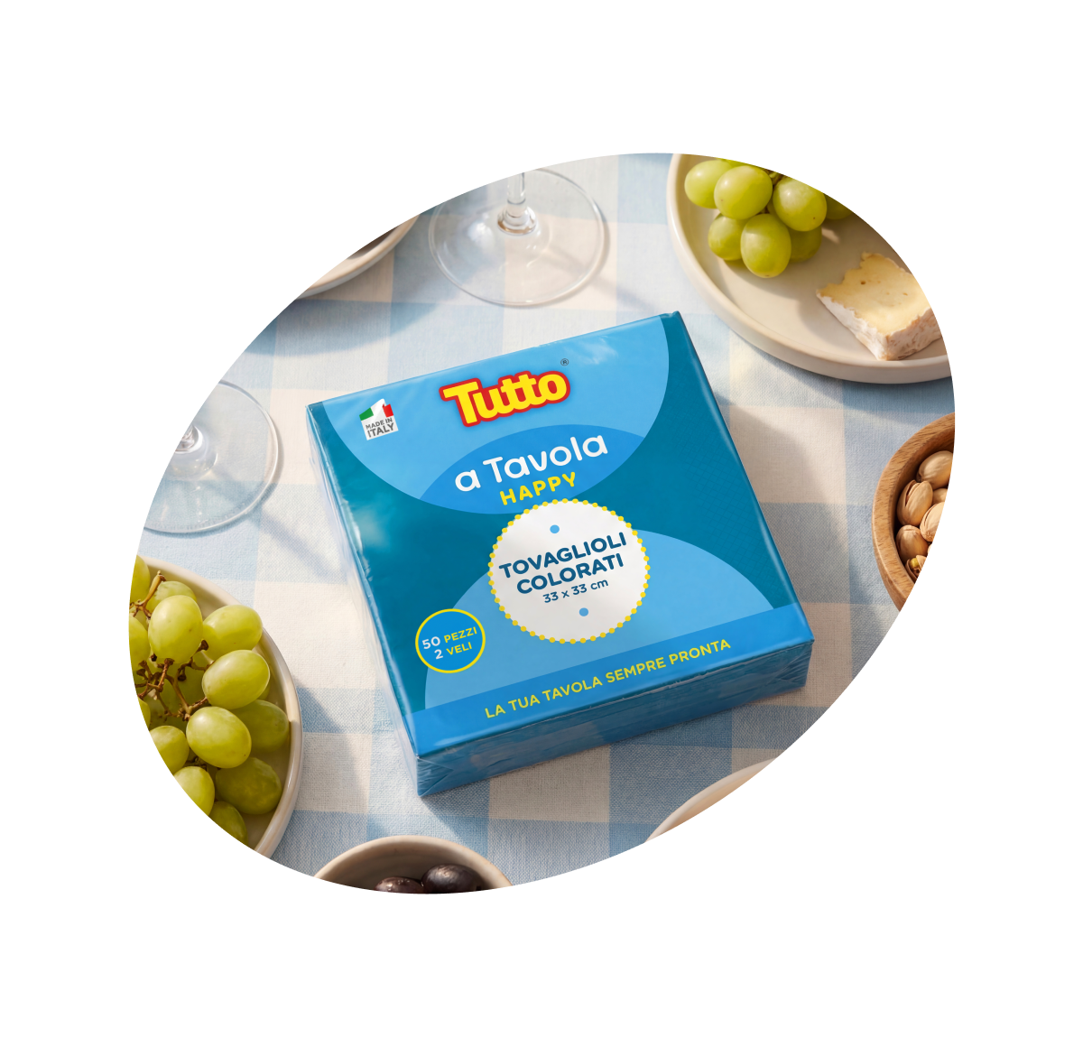 Tutto® a Tavola Happy è certificato per il contatto alimentare, sicuro e adatto per l’uso in cucina, perfetto per avvolgere cibi ed entrare a contatto diretto con gli alimenti.