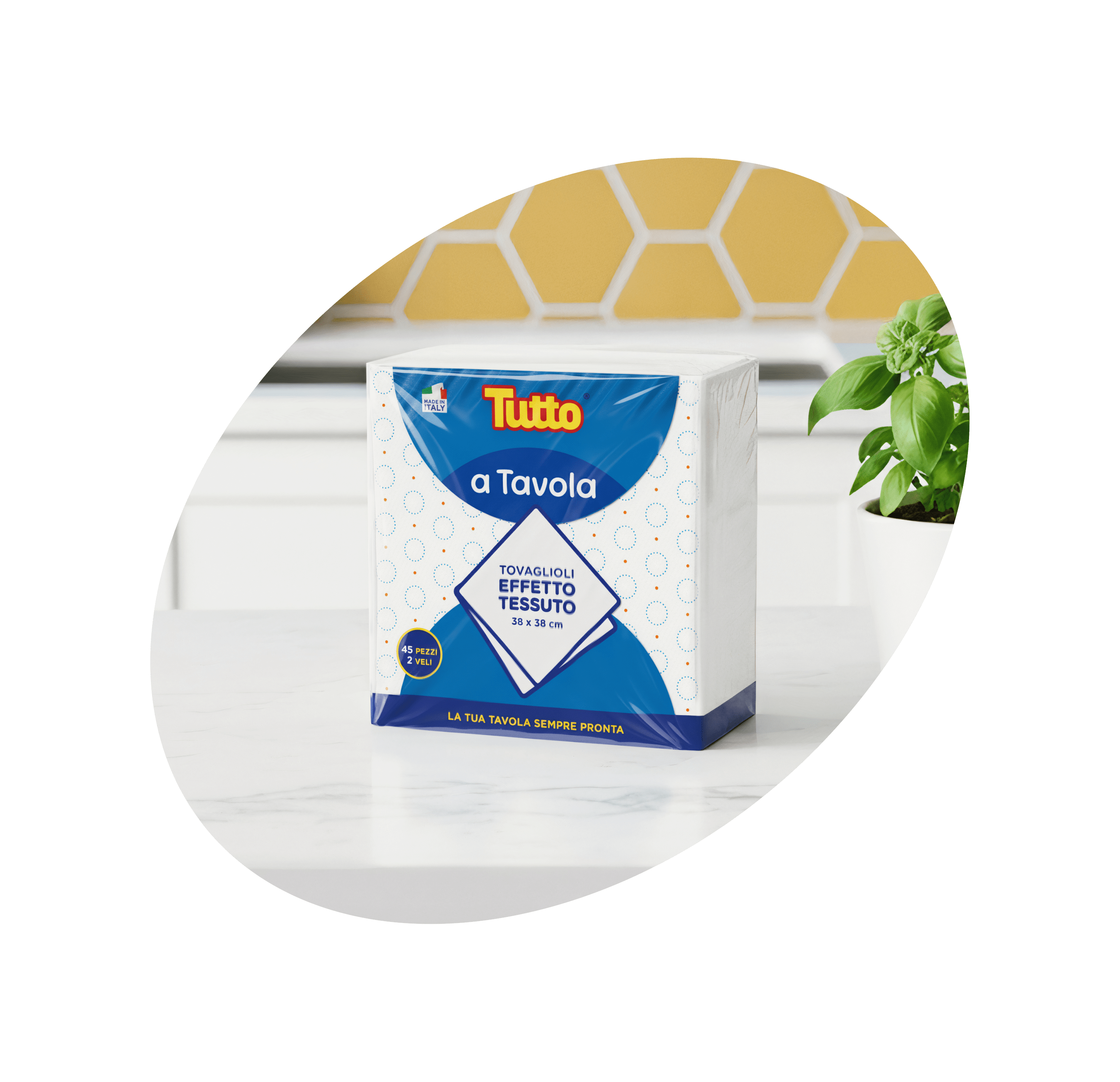 Tutto è vicino a te con una gamma di articoli dedicati a ogni ambiente della casa o attività da compiere, per soddisfare in modo mirato ogni tua esigenza. I prodotti, realizzati in pura cellulosa certificata FSC® MIX, sono pensati e progettati per offrirti qualità e performance assieme. L’imballo dei prodotti Tutto, nella pluralità dei casi, è realizzato in polietilene riciclato al 50% min., è completamente riciclabile seguendo le istruzioni fornite dal proprio comune di residenza in tema di raccolta differenziata.